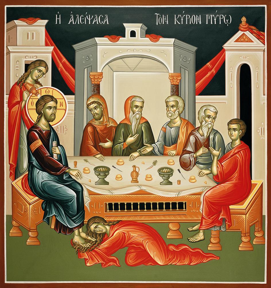 The service of Holy and Great Tuesday evening—liturgically the Orthros service of Wednesday morning—commemorates a harlot woman whose profound repentance led her before the feet of Christ. There, she sought to anoint them not only with costly fragrant myrrh but also with the tears of her own contrite heart. Our Lord’s boundless love towards her—and by extension to all of us as well—brought about the remission of her former sinful ways. Indeed, within the Service, her decisive turn away from a life of sin and her deep renewal in Christ are rendered...
