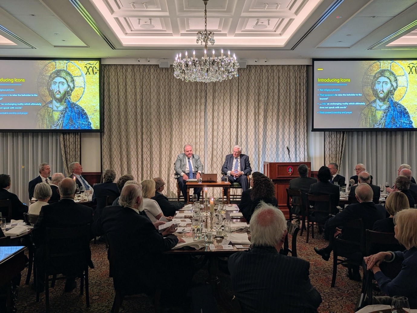 On Wednesday, 22 April 2026, Assoc. Prof. Philip Kariatlis, Sub-Dean of the College, delivered an address at the Australian Club in Sydney on the theological meaning and enduring significance of icons within the Christian tradition. The event was organised by Mr Stuart Coppock—a member of the Club and a current postgraduate student of the College—who also contributed a presentation. As a collector of icons, Mr Coppock displayed a selection from his collection for guests to view throughout the evening.