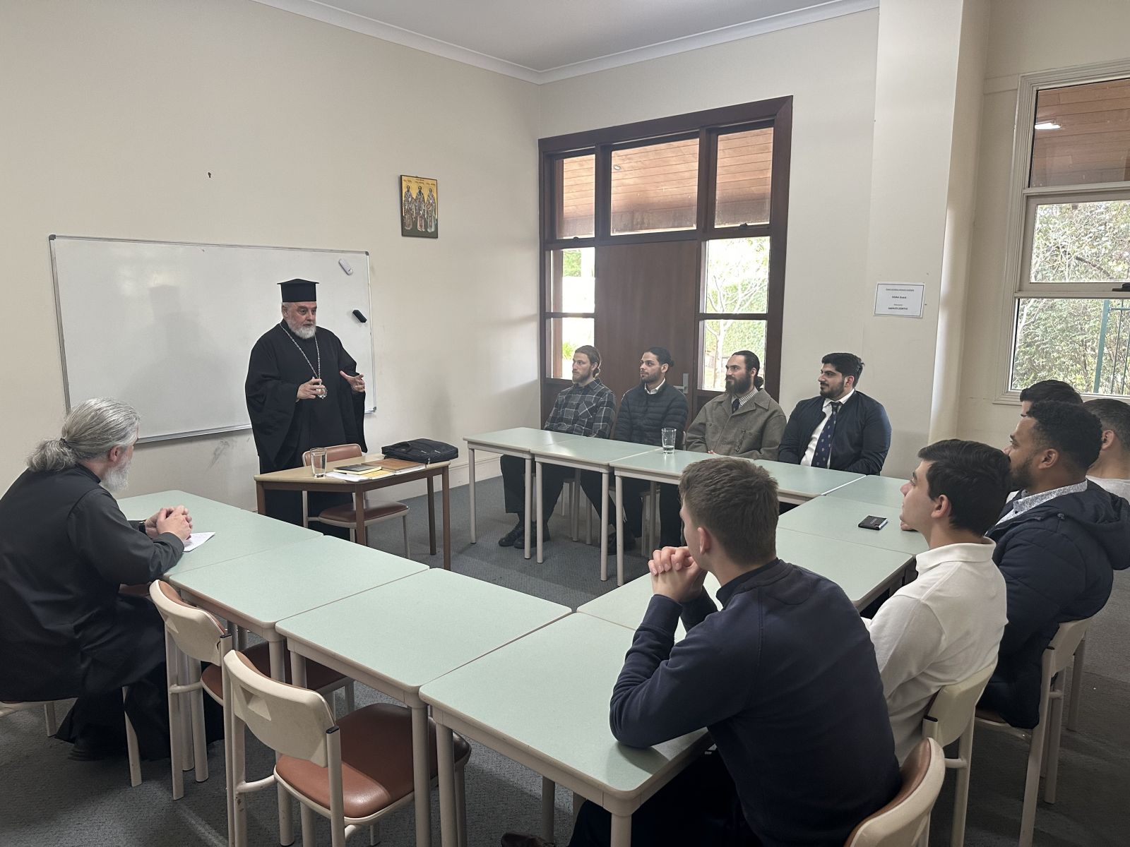 On Friday, 23rd August His Grace Bishop Iakovos of Miletoupolis visited the College and addressed the students as part of their Formation Program. His Grace reflected on the calling to the priesthood and shared many aspects of his own personal journey firstly, as a layman and theology student, then as a deacon and priest, and finally as a bishop. He encouraged the students to discern their vocation in humility and service to the Church remaining confident that there is a place for everyone in the body of Christ.”